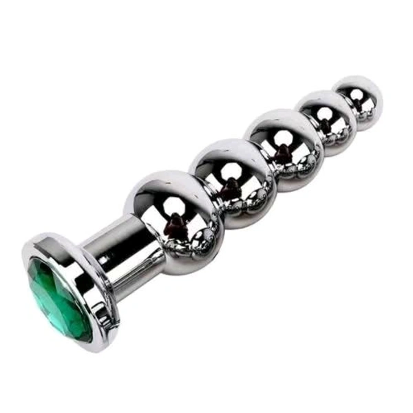 These Spectacular Jewel Plated Metal Anal beads come with a special twist – a spectacular jewel at the end of the stem for an extra luxurious feel to your anal play, and five balls throughout the plug. The perfect mix of anal beads & butt plug. The plug comes in four different colors, but all made of the same high-quality material that is easy to use and clean up after use, in a pleasing and comfortable shape fit for any user.
